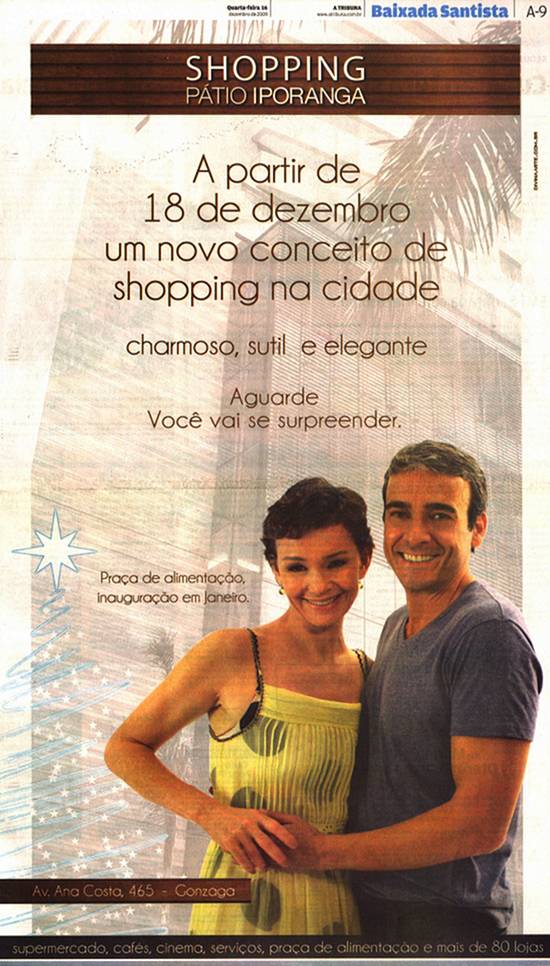 Shopping Pátio Iporanga - peça publicitária com a atriz Júlia Lemmertz e seu marido, o ator santista Alexandre Borges