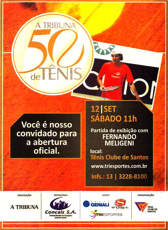 Jornal A Tribuna/Concais/Tênis Clube de Santos - 50º de Tênis, com tenista Fernando Meligeni