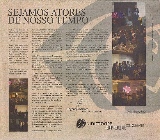 Publicado no jornal santista A Tribuna, em 4 de dezembro de 2009, pág. A-5