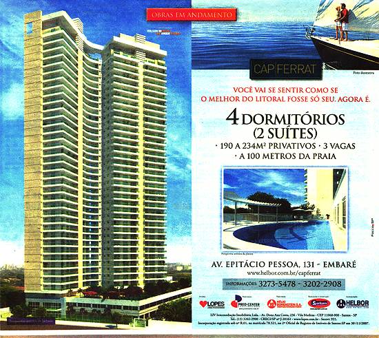 Lopes/Pred Center/Hélio Borestein S.A./Serlam/Helbor - edifício Cap Ferrat, em obras
