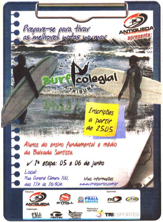 Antiqueda, jornal A Tribuna etc. - 15º Circuito Surfe Colegial da Baixada Santista