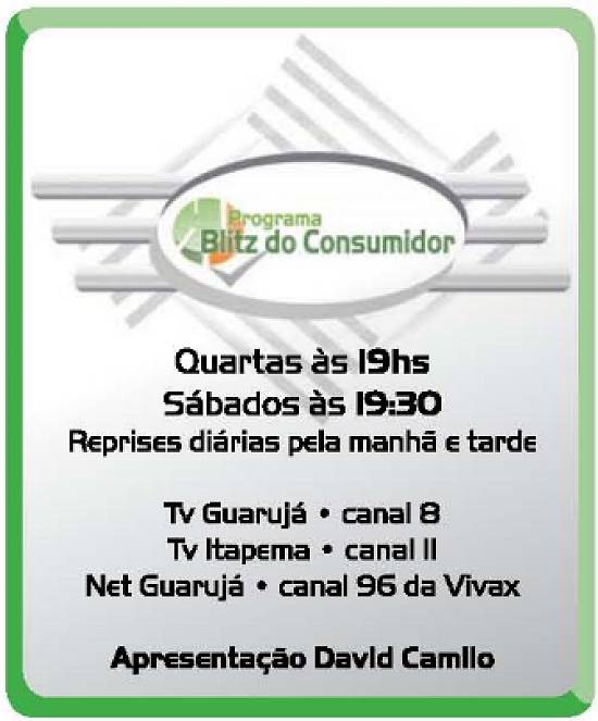 TV Guarujá, TV Itapema, Net Guarujá - Programa Blitz do Consumidor, de David Camilo