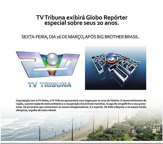 TV Tribuna - programa especial Globo Repórter pelos 20 anos da emissora santista