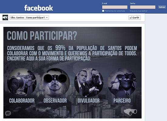 Páginas no Facebook do OBS-Santos em 31/3/2012