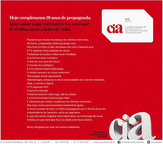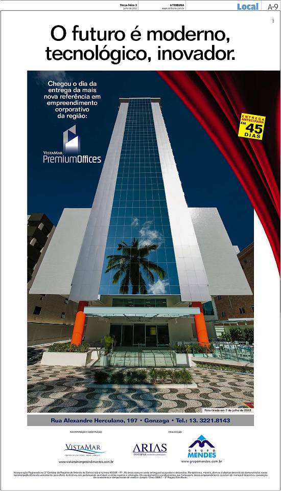 Anúncio publicado na revista santista Em Condomínios, edição 13/Ano 2, janeiro de 2012,