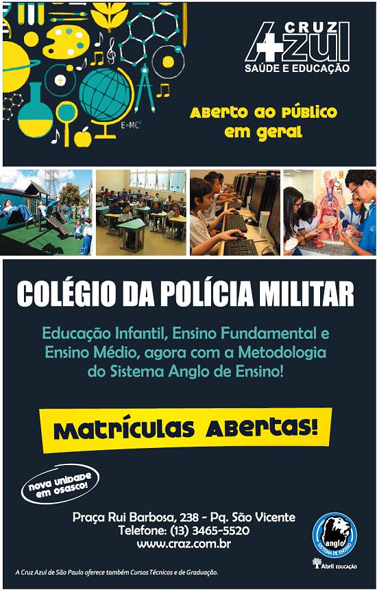 Colégio da Polícia Militar, em São Vicente, da Cruz Azul Saúde Educação, com Sistema Anglo de Ensino e Abril Educação