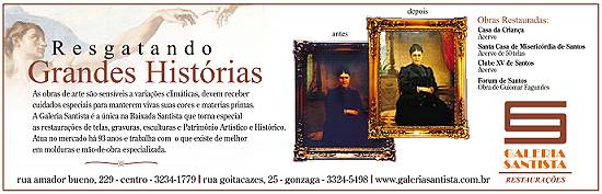 As obras de arte são sensíveis a variações climáticas, devem receber cuidados especiais para manterem vivas suas cores e matérias-primas.  A Galeria Santista é a única na Baixada Santista que torna especial as restaurações de telas, gravuras, esculturas e Patrimônio Artístico e Histórico. Atua no mercado há 93 anos e trabalha com o que existe de melhor em molduras e mão-de-obra especializada.