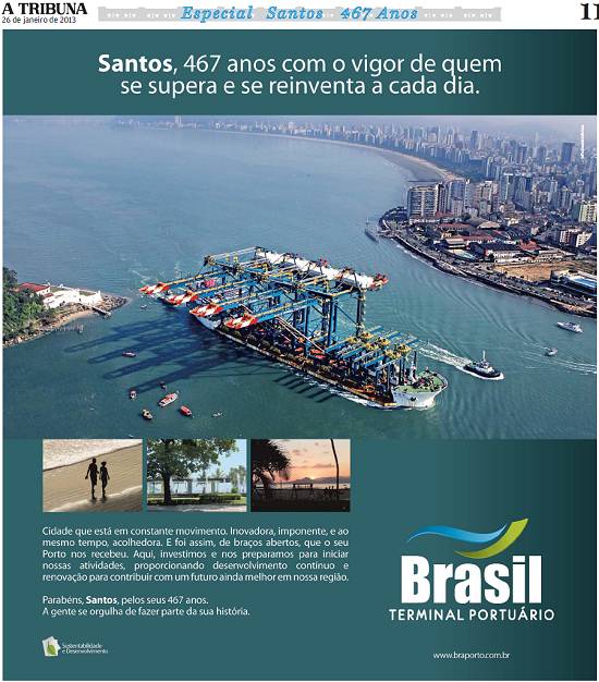 Anúncio no jornal A Tribuna, caderno especial Santos, em 26 de janeiro de 2013, página 11