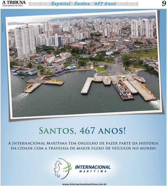 Anúncio no jornal A Tribuna, caderno especial Santos, em 26 de janeiro de 2013, página 9