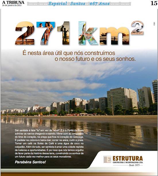 Anúncio no jornal A Tribuna, caderno especial Santos, em 26 de janeiro de 2013, página 15