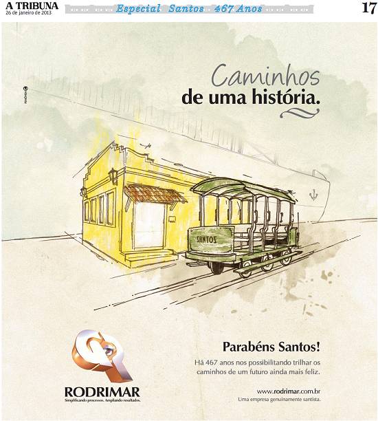 Anúncio no jornal A Tribuna, caderno especial Santos, em 26 de janeiro de 2013, página 17