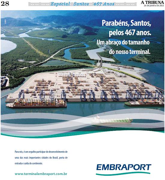 Anúncio no jornal A Tribuna, caderno especial Santos, em 26 de janeiro de 2013, página 28