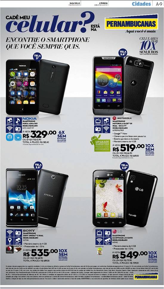 Casas Pernambucanas - promoção de telefones celulares inteligentes (smartphones)