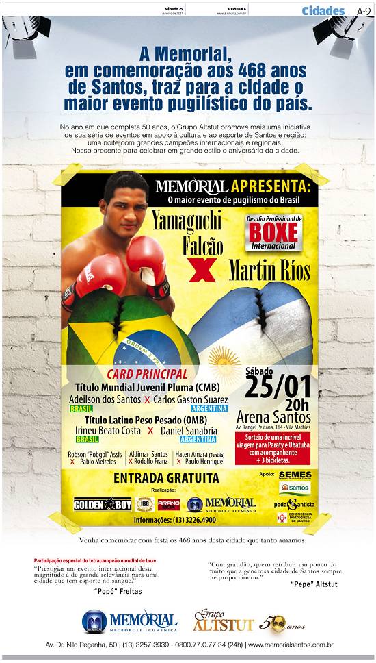 Publicado no jornal santista A Tribuna, edição de 25 de janeiro de 2014, páginas A-4 e A-5