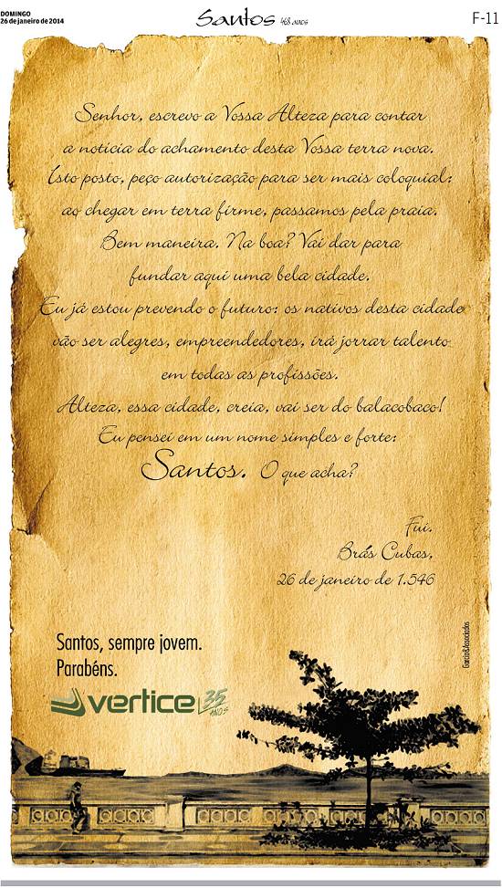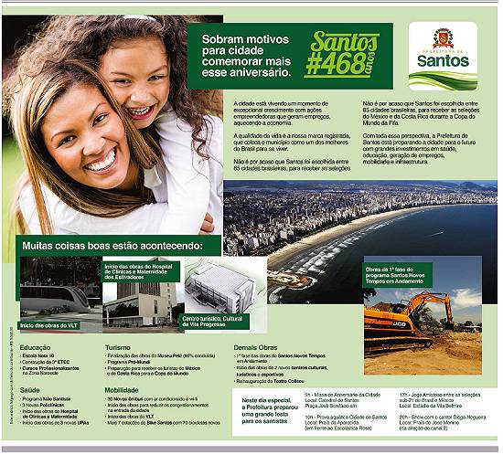 Publicado no jornal santista A Tribuna, em 26 de janeiro de 2014, página F-11 (especial Santos)