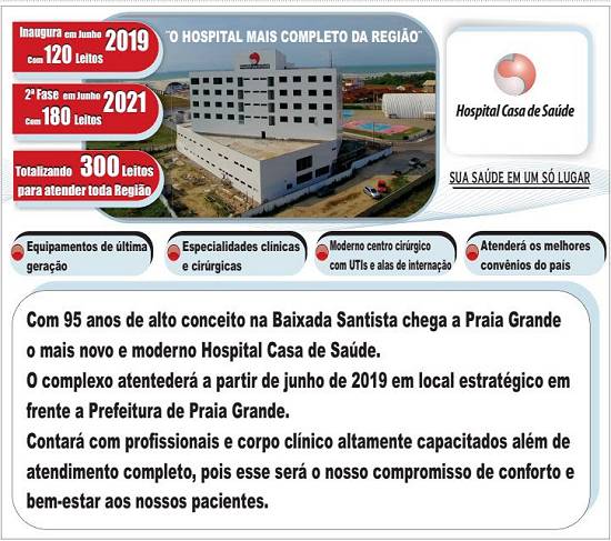 Casa de Saúde de Santos - 95 anos - novo hospital em Praia Grande a partir de junho de 2019