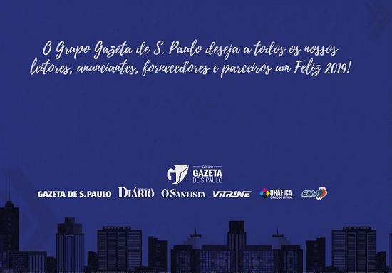Grupo Gazeta de S. Paulo/Diário do Litoral/O Santista/Vitrine/Gráfica/CNM deseja um Feliz 2019