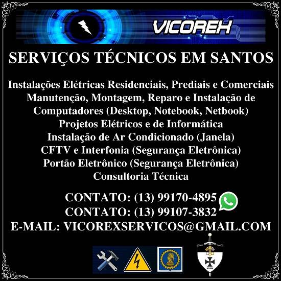 Vicorex Serviços Técnicos em Santos - segurança eletrônica, instalações elétricas residenciais, computadores e condicionadores de ar