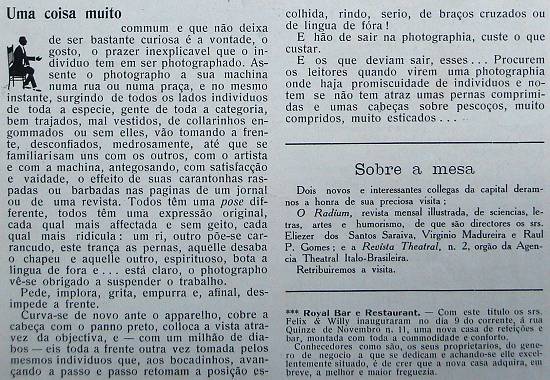 máquina, antegozando, com satisfação e vaidade, o efeito de suas carantonhas raspadas ou barbadas nas páginas de um jornal ou de uma revista.