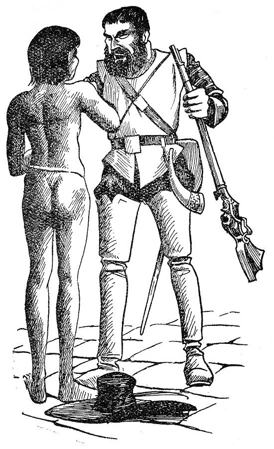 E brandia o chicote de couro cru diante da face parada do índio, que o pavor imobilizara o olhar. Mas um sorriso mau enrugara a face do espanhol.