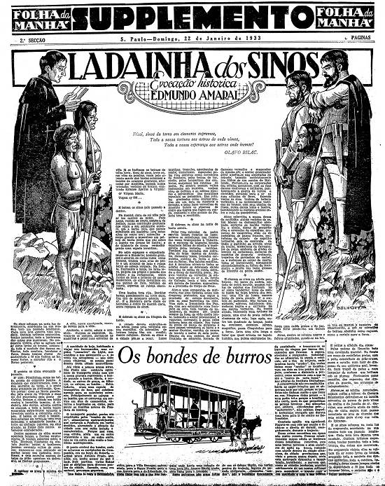 Sons de sinos, leves como vôos de pombas, voam pelo silêncio macio das tardes coloniais e bandos de crianças guaranis, educadas por Anchieta, passam