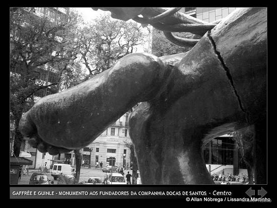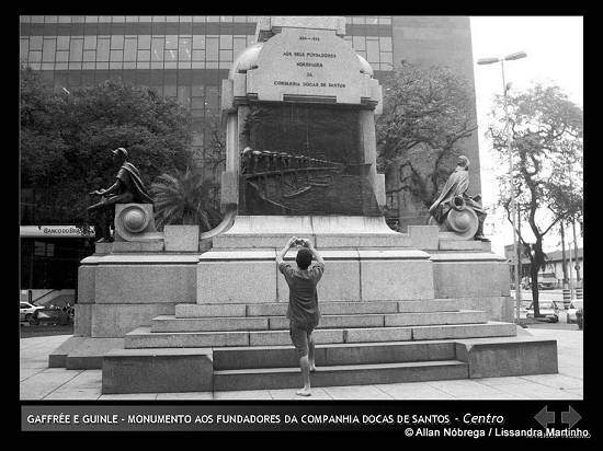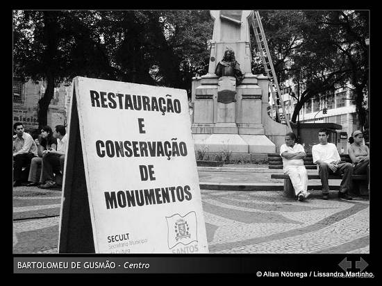 Clique na imagem para voltar ao início da sérieEm 2007, dois estudantes de Comunicação Social na Universidade Católica de Santos (UniSantos), Allan Kardec Queiroz da Nóbrega e Lissandra Bernardo Martinho, pesquisaram como trabalho de conclusão de curso (TCC) a relação das cidades de Santos e São Vicente com seus monumentos. Esta é a série de 238 imagens do trabalho, originalmente preparadas para apresentação do tipo PowerPoint, além dos acréscimos a posteriori: