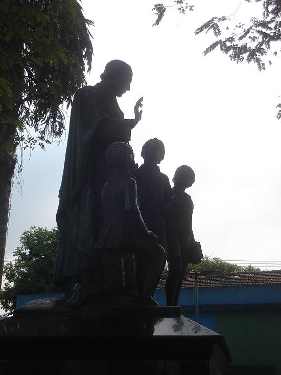 Uma estátua em homenagem ao Venerável e beato Marcelino José Bento Champagnat, fundador da Congregação dos Irmãos Maristas, foi inaugurada em 25 de janeiro de 1961 na praça que leva seu nome, Padre Champagnat, situada na confluência das ruas Luiz de Camões, Xavier Pinheiro e Dr. Carvalho de Mendonça. A iniciativa foi da Associação dos Alunos, Ex-alunos, Pais e Mestres do Colégio Santista; o bronze é do Rio Grande do Sul; a montagem e o fuste foram executados pelo engenheiro Fernando Guilherme Martins: