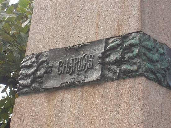 do escultor Egisto Bertozzi inclui uma "faixa" com três palavras latinas, uma em cada lado: Labor (direita), Charitas (atrás) e