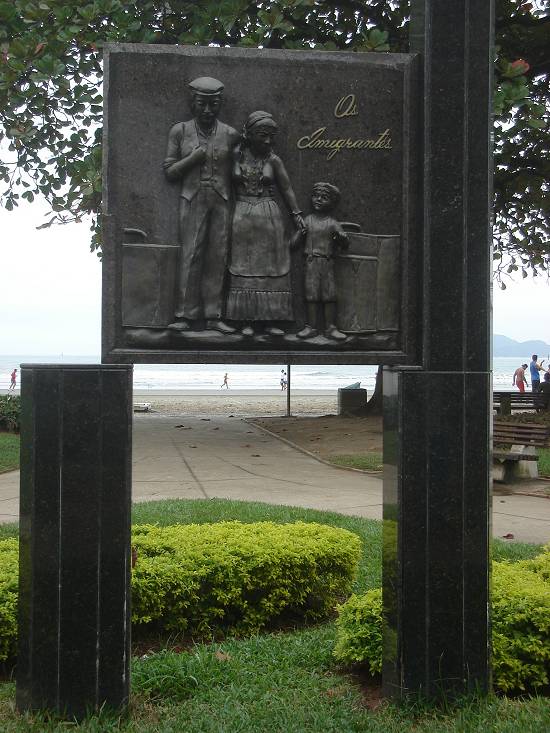 colocada nos jardins da praia, dentro das festividades aos 500 Anos do Descobrimento. A obra em bronze - Os Imigrantes - com altura de