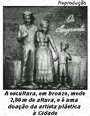 2,80 metros, mostra um casal com filho e bagagens, dentro do estilo figurativo expressivo, na chegada ao País.