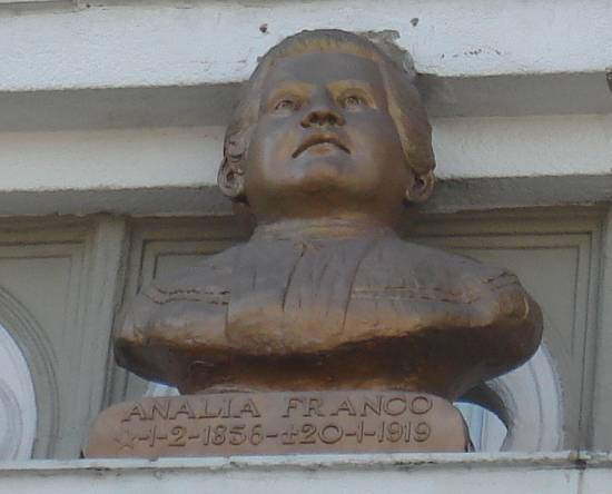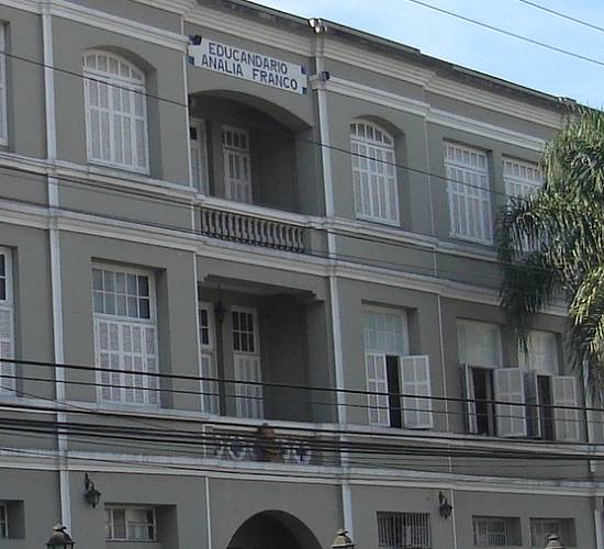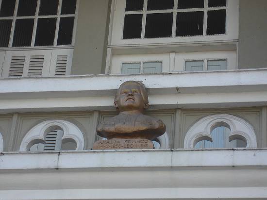 Educandário Anália Franco, na Avenida Ana Costa, 285, está colocado o busto da educadora que deu seu nome a essa entidade assistencial, com suas