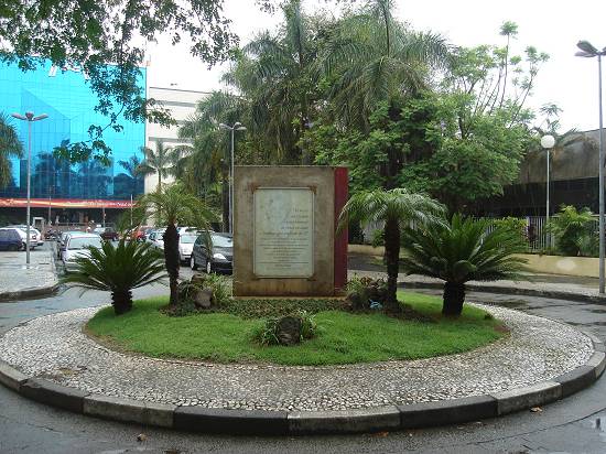 Nesse monumento, o texto: "As rosas não falam/Simplesmente as rosas exalam/O