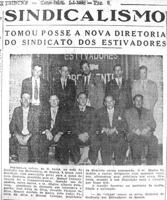 No clichê vemos os novos diretores do Sindicato dos Estivadores de Santos. |