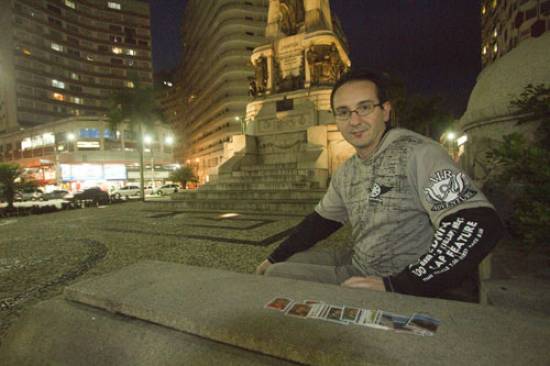 na calçada onde fica a Banca Estátua, na Avenida Ana Costa.
