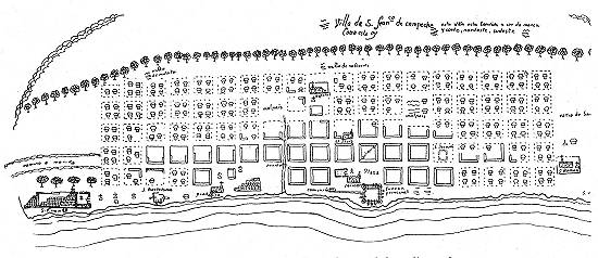 Detalhe da planta da cidade de Campeche, mandada realizar pelo governador Esquivel