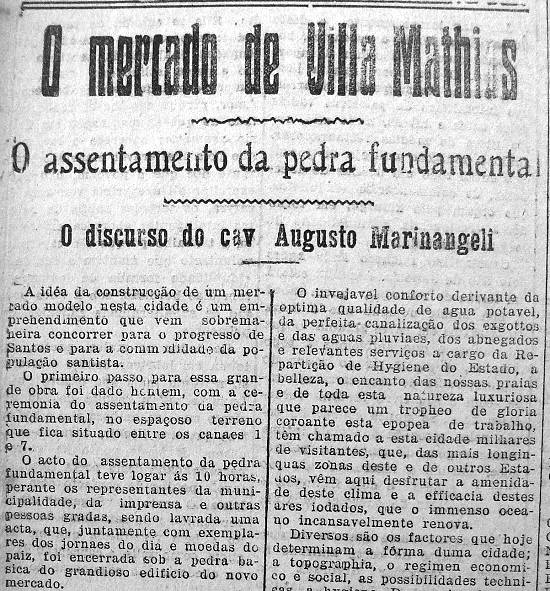 Benedicto de Moura Ribeiro, neste local, entre as avenidas dos canais ns. 1 e 7, Vila Mathias, foi colocada a pedra fundamental do mercado