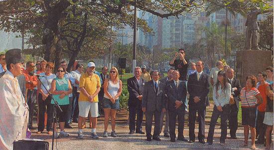 Ontem de manhã, diante do Monumento do Imigrante, no jardim da orla do