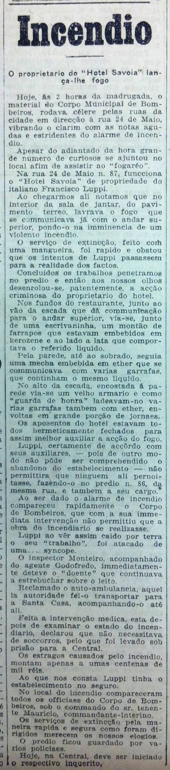 Na Rua 24 de Maio n. 87, funciona o Hotel Savoia, de propriedade do italiano Francisco Luppin.