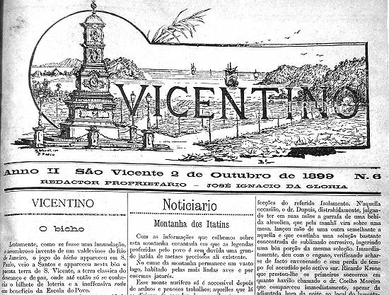 Vicentino, publicado em São Vicente em 2 de outubro de 1899 (ano II, nº 6 - exemplar no acervo da