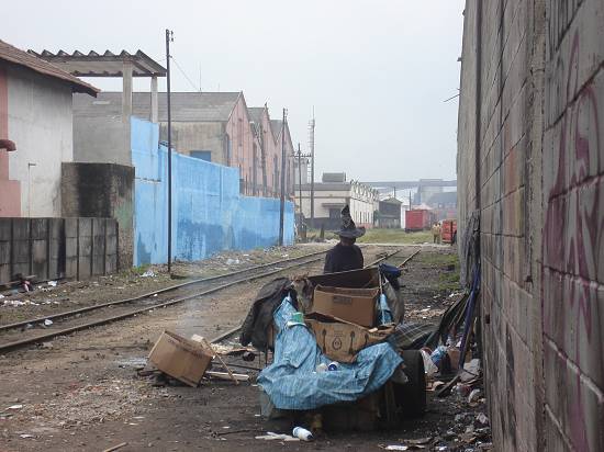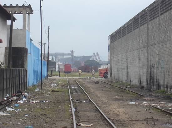 Trilhos da linha litorânea, entre a Avenida Rodrigues Alves e o porto