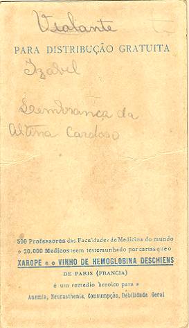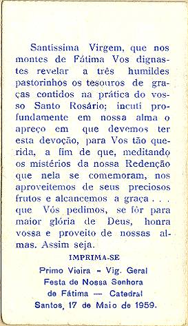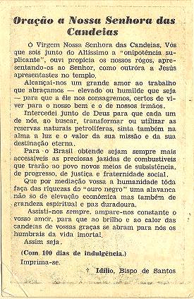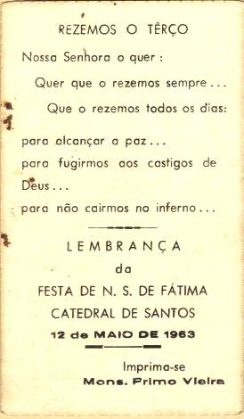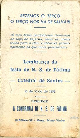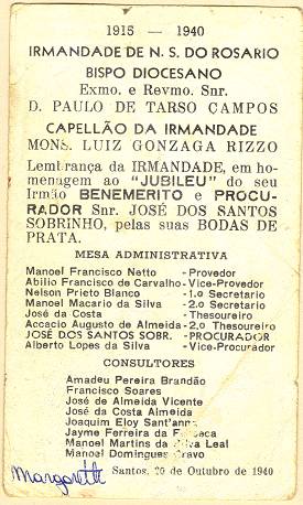 com a imagem do santo homenageado e no verso uma prece. Em Santos, há exemplares do início do século XX, em alguns casos impressos especialmente para a festividade, em outros apenas comprados em São Paulo ou no exterior para distribuição em certa data,