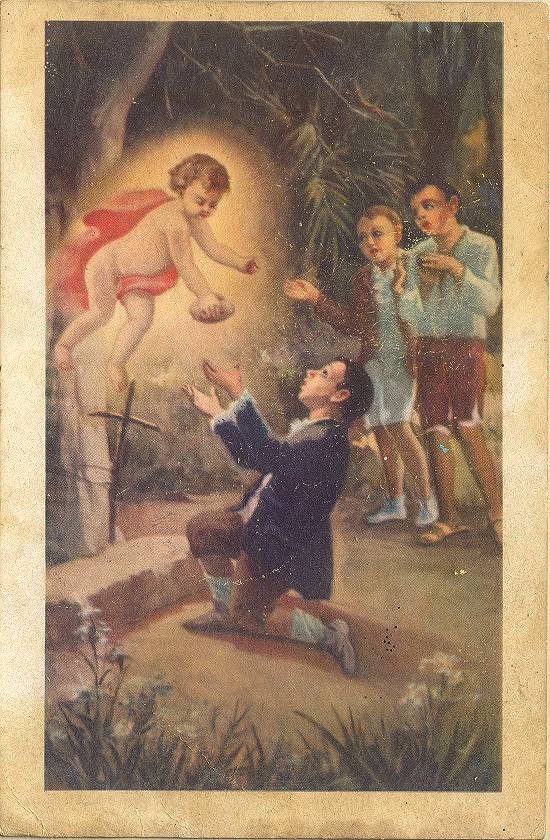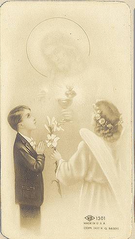 São Gerardo estadunidense para 1ª comunhão - cartão postal impresso em Roma para o Santuário de S. Gerardo Maiella Materdomini . Coleção