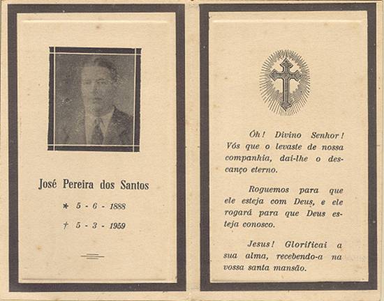 Cartão de luto brasileiro por José Pereira dos Santos, em 5/3/1959. Coleção Francisco Carballa