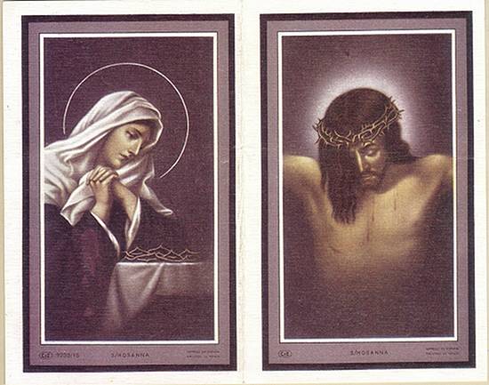 Tradição nas igrejas, por ocasião de comemorações religiosas, é a distribuição aos fiéis dos chamados santinhos, com a imagem do santo homenageado e no verso uma prece. Em Santos, há exemplares do início do século XX, em alguns casos impressos especialmente para a festividade, em outros apenas comprados em São Paulo ou no exterior para distribuição em certa data, ou, o que é mais comum, com uma estampa colorida na frente e sem nada no verso, este então impresso com a mensagem específica. Eis outras imagens:
