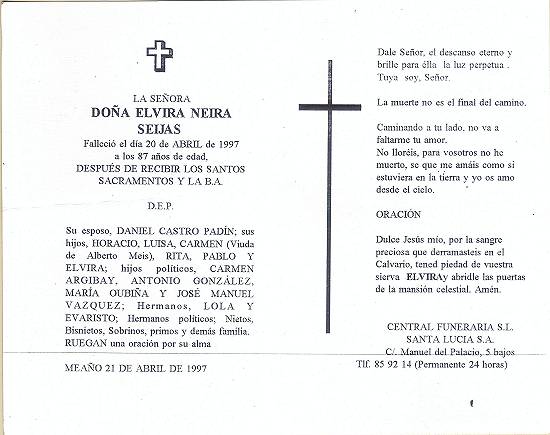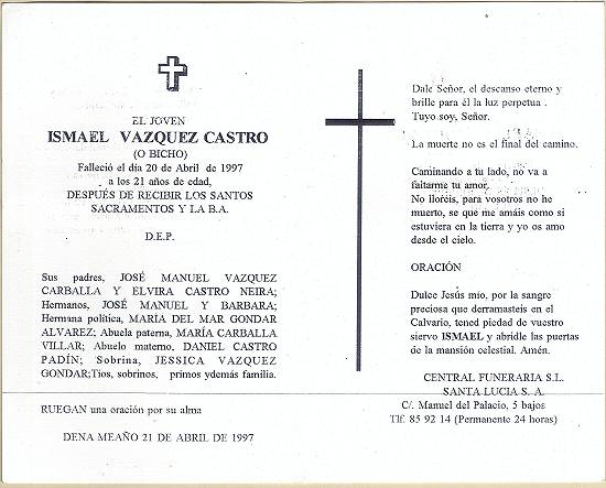 Cartões de luto espanhóis por Ismael Vazques Castro, em 21 de abril de 1997.