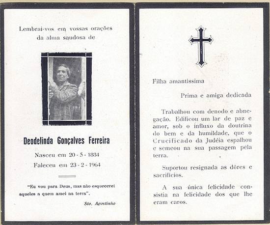 Cartão de luto nacional por Deodelinda Gonçalves Ferreeira,  em 23 de fevereiro de 1964.