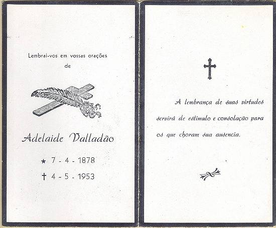 Cartão de luto nacional por Adelaide Valladão, em 4 de maio de 1953. Coleção Francisco Carballa