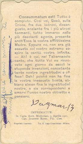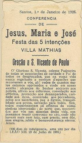 com a imagem do santo homenageado e no verso uma prece. Em Santos, há exemplares do início do século XX, em alguns casos impressos especialmente para a festividade, em outros apenas comprados em São Paulo ou no exterior para distribuição em certa data,