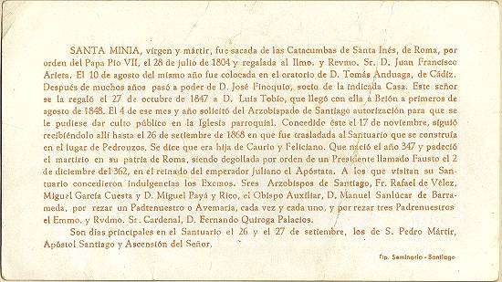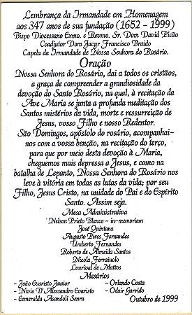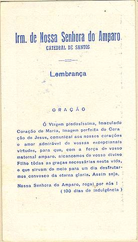com a imagem do santo homenageado e no verso uma prece. Em Santos, há exemplares do início do século XX, em alguns casos impressos especialmente para a festividade, em outros apenas comprados em São Paulo ou no exterior para distribuição em certa data,