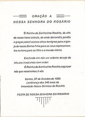 com a imagem do santo homenageado e no verso uma prece. Em Santos, há exemplares do início do século XX, em alguns casos impressos especialmente para a festividade, em outros apenas comprados em São Paulo ou no exterior para distribuição em certa data,